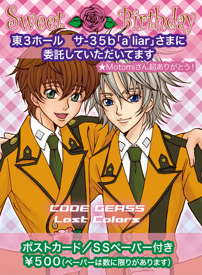それから、ぎりぎりになってしまったのですが下の記事で委託していただいた既刊「Sweet Birthday」を、今度はH様に委託していただくことになりました。