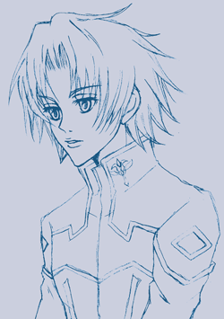 スザクにとっても、ルルーシュにとっても主人公って分身というか、救いというか光のような気がします。主人公の絵もらくがきしているのですがまったく顔が決まりませんorz